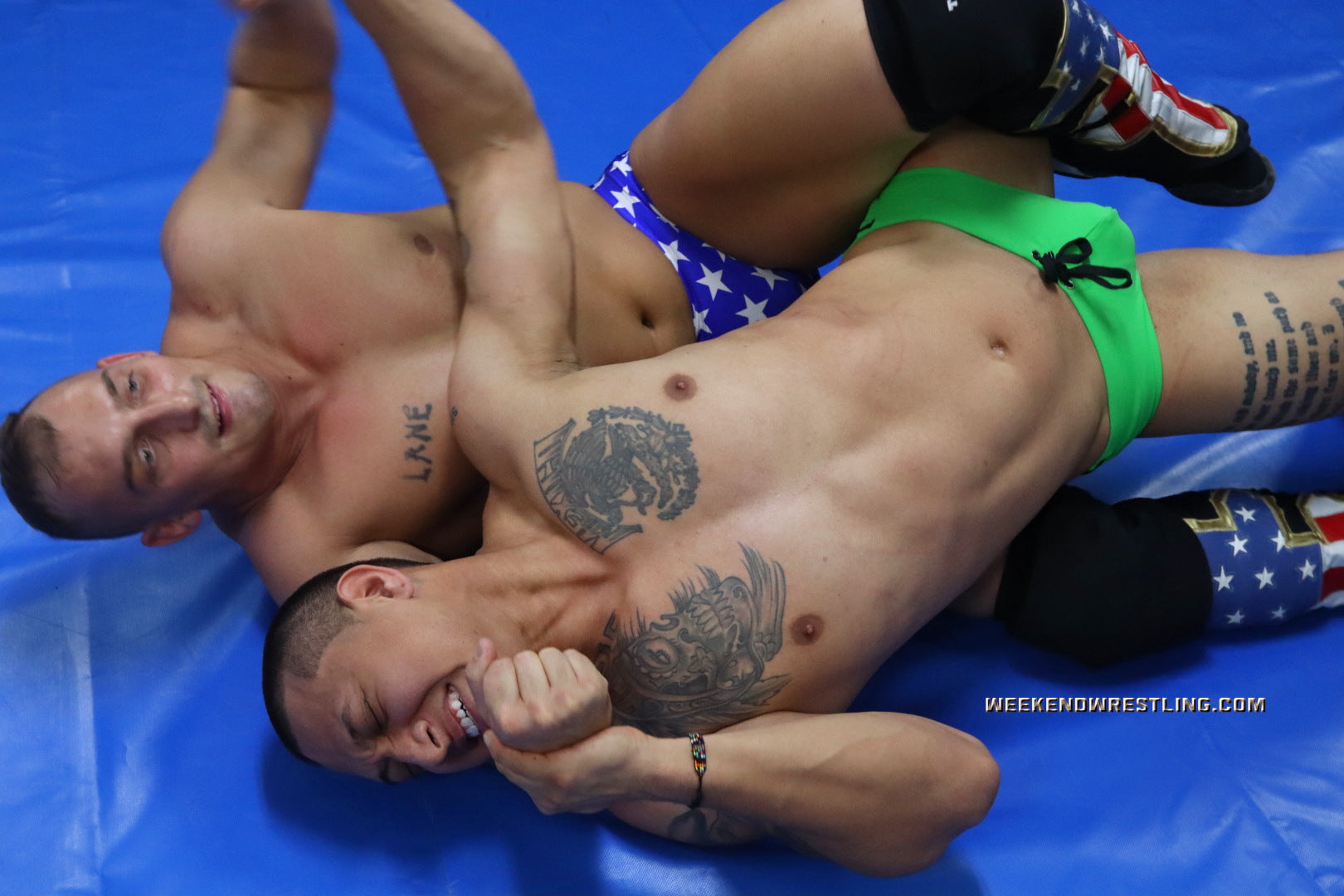 One of the things they have in-common is their love for competitive contact sports. Few things excite them more than getting into gear and testing their limits in combat. Each embraces their own style of wrestling and each is very effective at imposing their will upon their opponents. Diego's background is centered around ground grappling, while Roger's pro style wrestling is his go-to when out-mastered on the ground. That makes for a beautiful mix of submissions and pro-style moves that leaves each other frustrated and drained at the finale.