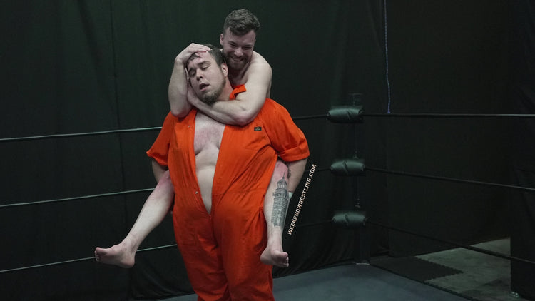 Mo Manson doesn’t just reclaim what’s his—he makes a statement. When he catches Austin Lynch with his cuffs, the clean-cut grappler is dragged into the ring and taught a brutal lesson in dominance. The prison-hardened beast isn’t just here to win—he’s here to dismantle and humiliate. Austin fights hard, but Mo is a master of breaking men down, stretching him out in full display as he rips away his dignity one layer at a time. Boots, socks, knee pads—each piece of gear stripped methodically until only Austin’s wrestling trunks remain, clinging to his battered frame like the last shred of his pride. But Mo isn't done. He yanks and stretches those trunks, teasing the inevitable, before finally stripping Austin down to his tight bikini briefs, leaving him humiliated and vulnerable.