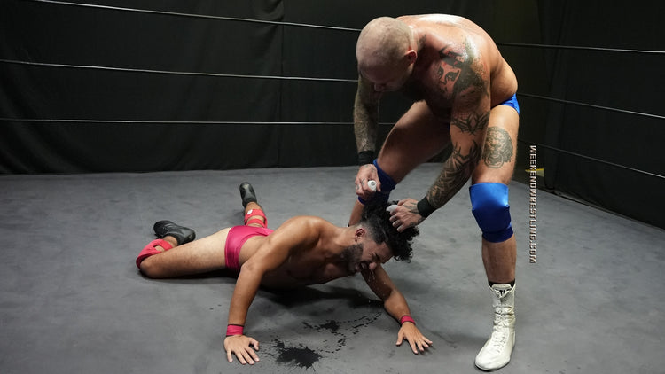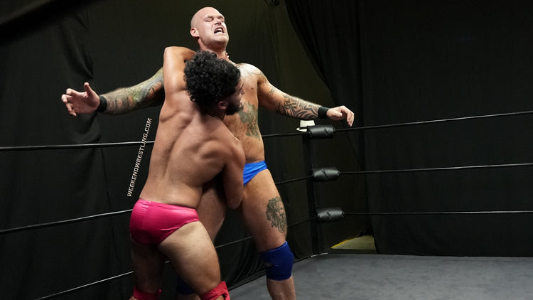 In a risky effort to immediately make his mark in Weekend Wrestling, Hired Gunz, Bam Bam Bossio challenges the Giant, VanGore to a body slam challenge with modified rules to compensate for the obvious size difference. VanGore must successfully perform 10 body slams in order to win, but Bam Bam needs only one to secure the victory. Of course, neither contestant will limit themselves to body slams alone and there is plenty of pain dished out between competitors before someone will score their quota and secure the "W".
