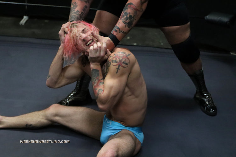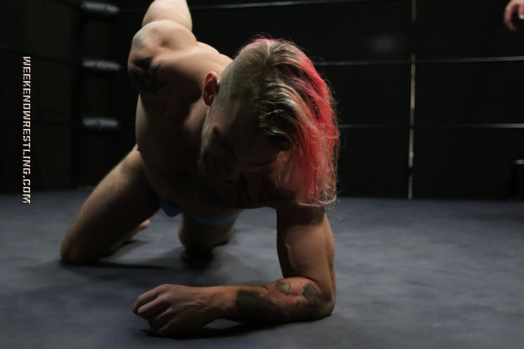 All Cody Blayde wanted was a relaxing massage from his favorite therapist, Brittany. But when he got to the Weekend Wrestling Studios, he found Zach Reno in her place. Now Zach is a skilled masseur, but also a very clever wrestler. He paid Brittany to take a long break while he took care of Cody himself. When we say "himself", we mean Shockwave. Zach also paid that mountain of a man to toss Cody in the ring and soften him up before Zach would take over and finish him off.
