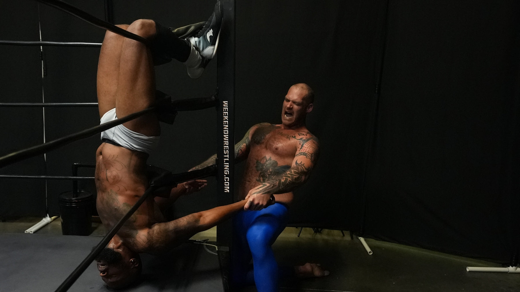 A regretable, but unavoidable moment. One crew member inside the ring passed the camera to a crew member outside the ring to capture what they thought was the best shot, not knowing what the wrestlers had in-mind. The upside is that we were able to capture plenty of other beautiful shots of that 'main attraction' in this match.