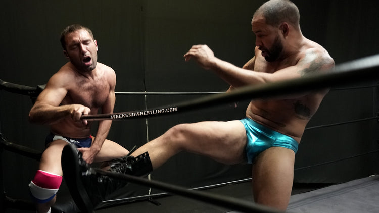 Two alpha males, one ring, and a grudge that didn’t even need a reason to ignite. The match opens with Zach Reno running the ropes, muscles rippling under that hairy chest, trying to focus on his training. But lounging across the turnbuckle, Danny Del Toro can’t resist stirring trouble—mocking, heckling, and smirking like he owns the place. Zach tries to tune him out, but Danny makes his move with a sudden wedgie, yanking deep into Zach’s trunks under the excuse of “making him look professional.” When Zach tries to run again, Danny’s hand finds the fabric once more, holding him back, humiliating him before cracking him across the face with a slap that changes everything. Zach explodes, unloading with raw, punishing strikes as the two alphas collide in a testosterone-soaked clash.