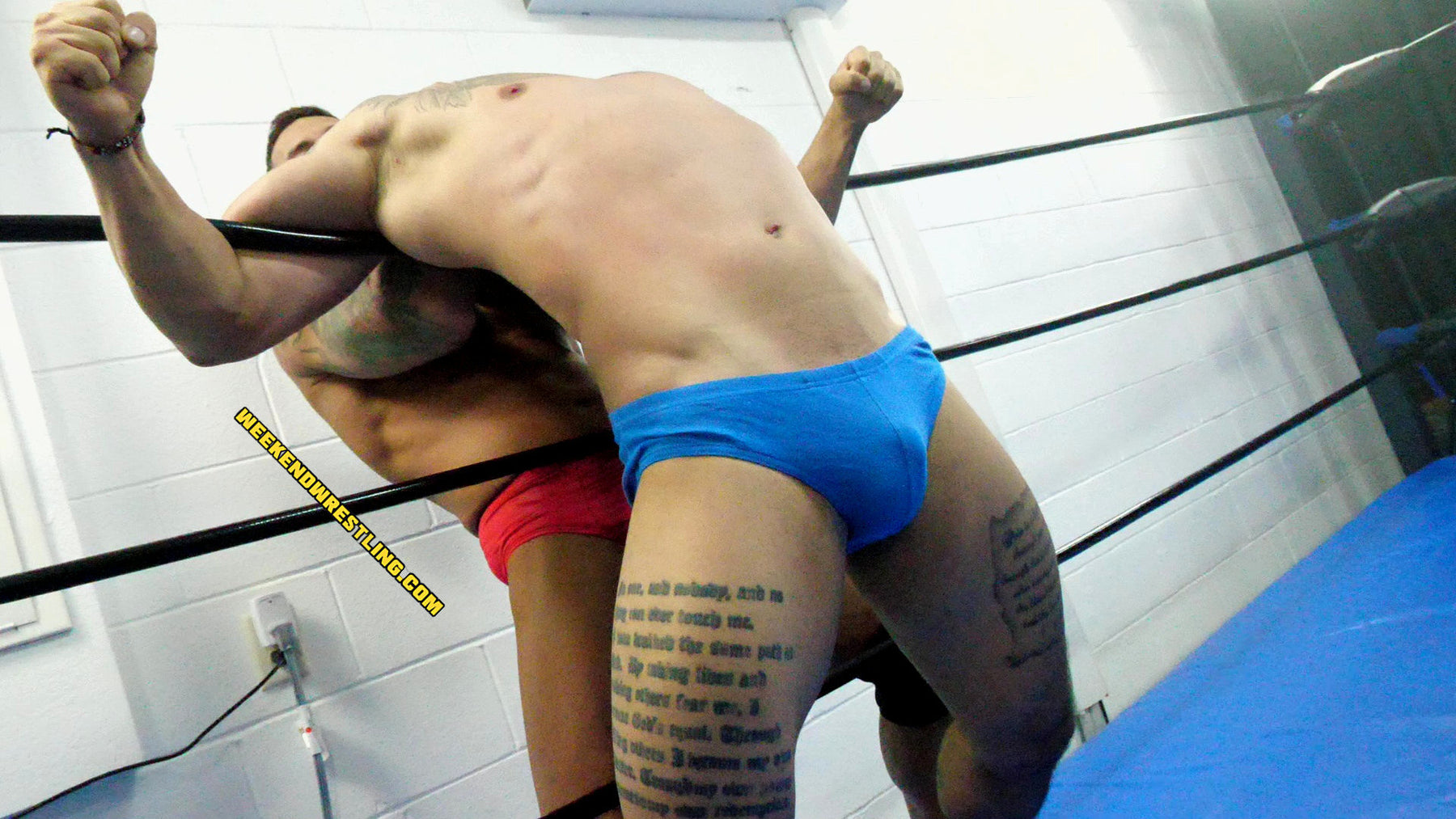 This was a great match up with… current weekend wrestling hunk Zach Reno vs newcomer Blayne… The premise of two twin like hunks going at it in the ring was well done… Both guys look fantastic in this match up ( I am loving Zach thicker hairy build)… This is a match up I highly recommend checking out… As usual Zach Reno never disappoints… He does an amazing job throughout it… Blayne did a great job as well… a nice new addition to weekend wrestling…