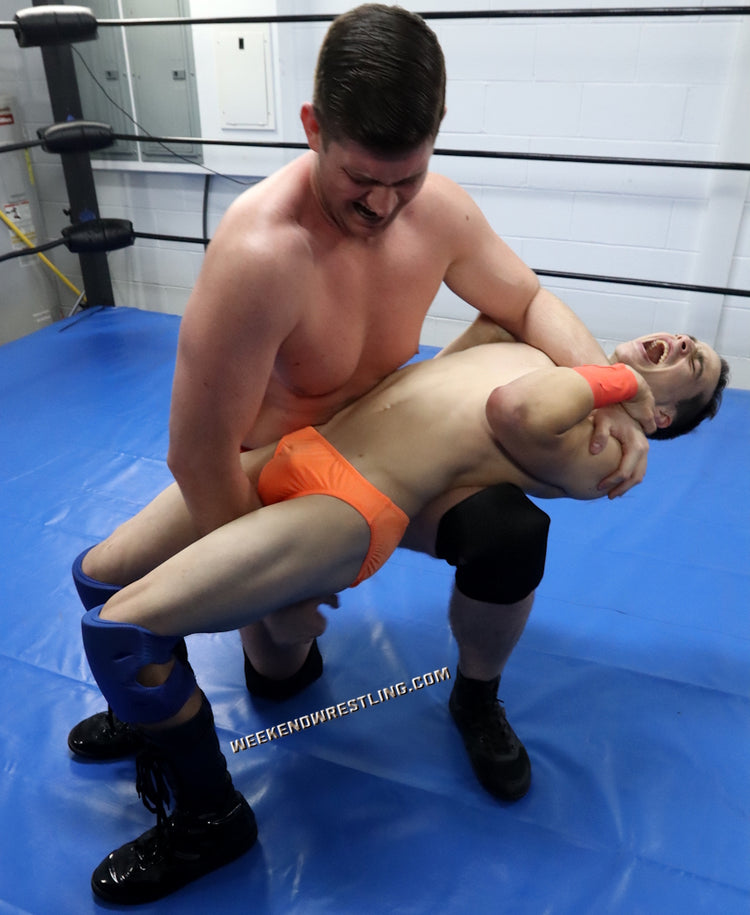 This was a great match up with… current weekend wrestling hunk Zach Reno vs newcomer Blayne… The premise of two twin like hunks going at it in the ring was well done… Both guys look fantastic in this match up ( I am loving Zach thicker hairy build)… This is a match up I highly recommend checking out… As usual Zach Reno never disappoints… He does an amazing job throughout it… Blayne did a great job as well… a nice new addition to weekend wrestling…