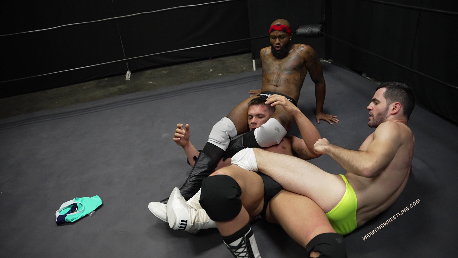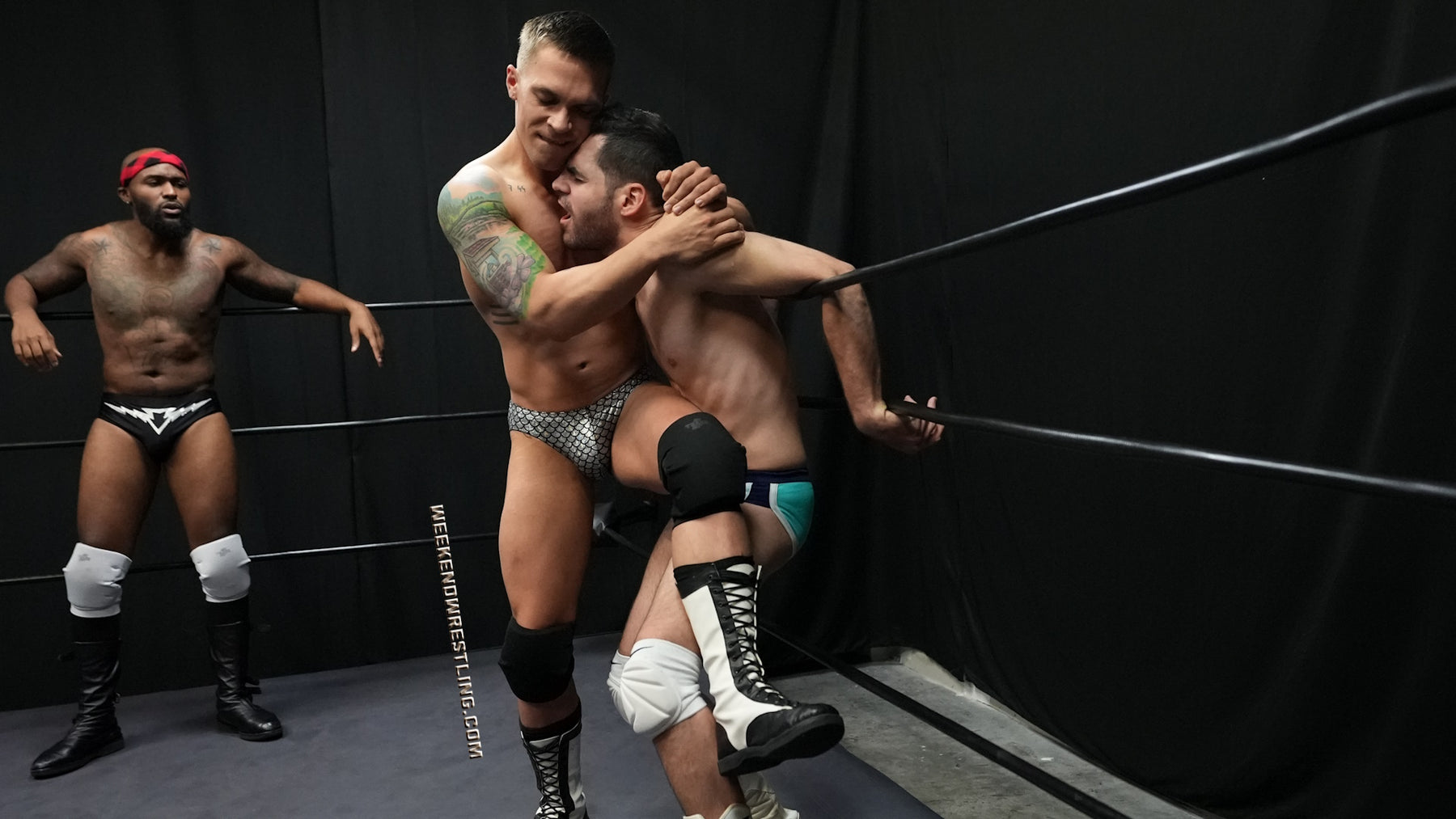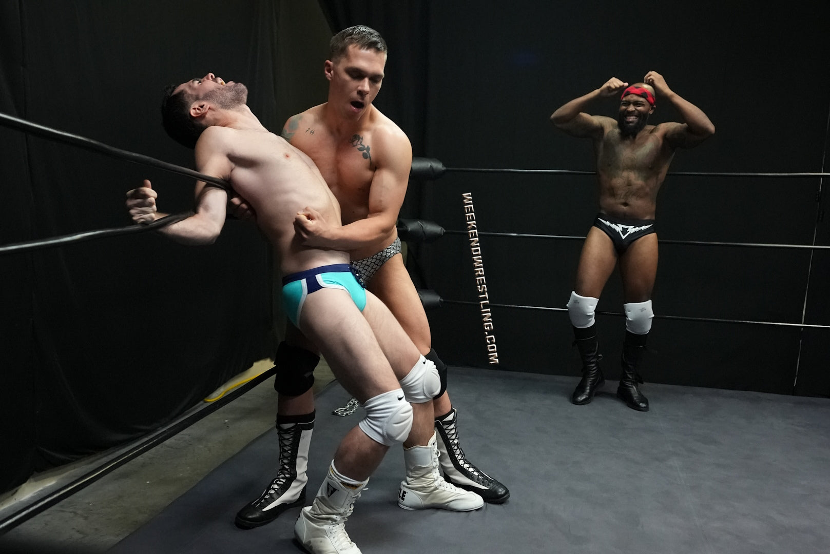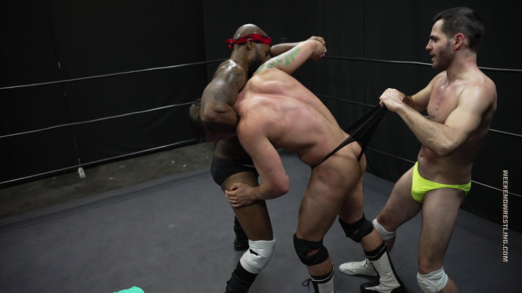 Dallas Washington double-crosses Elite Eliot after Eliot allies with him to double-team Steve Mason, leaving Eliot to defend himself against the other two in this twisted 2 vs 1 handicap match. Eliot goes into this match thinking he's the alpha and is planning to show these boys how to man-up in a wrestling ring, but he'll be on the receiving end, wedgied, stripped, low-blowed, gut-bashed tortured and humiliated.