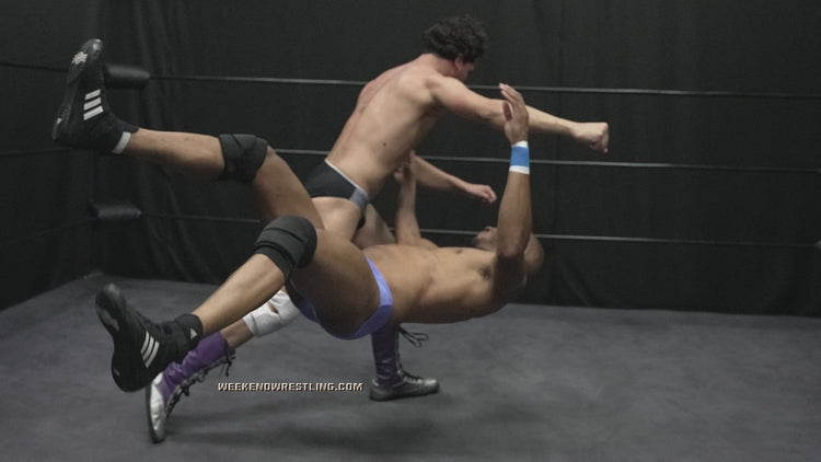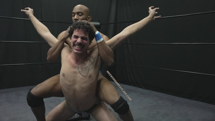 Freddie Marz was at his breaking point, pacing the ring, venting about the injustices he faced at Weekend Wrestling. His flamboyant charm had made him a target for teasing, and the once-spirited rocker now stood vulnerable. Enter Tedros, the "Friendliest Guy," exuding his signature charm. With a soothing tone and a disarming smile, Tedros consoled Freddie, lulling him into a false sense of security. Just as Freddie began to trust him, Tedros revealed his true nature. A sudden knee to Freddie’s gut left him gasping, and the ambush began. Tedros unleashed an onslaught of humiliating submission holds, stretching Freddie's body in agonizing ways. A full nelson left Freddie defenseless, followed by a torturous bow and arrow, groin stretches, and a cruel crotch claw that had everyone wincing. Between holds, Tedros delivered degrading wedgies, each tug emphasizing his dominance as Freddie writhed in pain and humiliation.