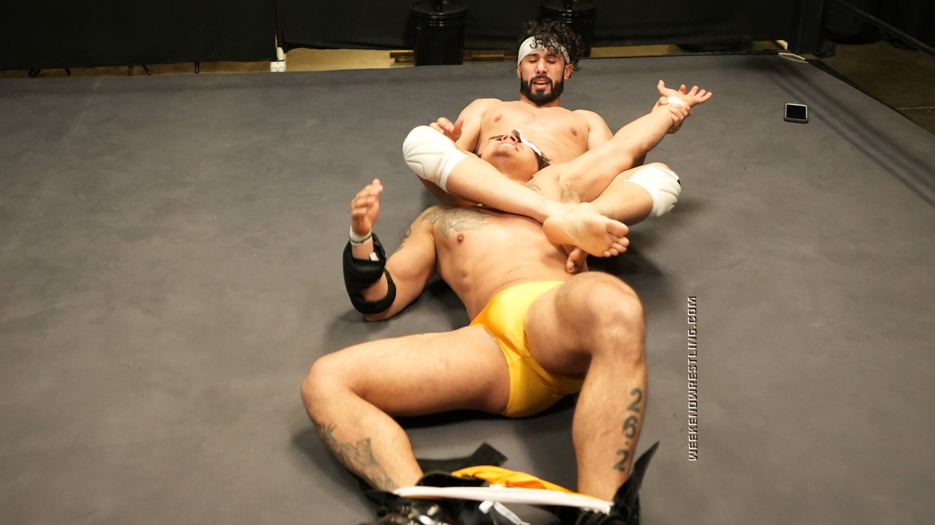 Envy and jealousy about whom is the more popular wrestler at Weekend Wrestling becomes the focus of a dispute as hunks Diego Maya and The Handsome Strangler take to the canvas in a rather unorthodox gear-strip/swap match to settle this once and for all. The trunks really come off as bulging egos try to out-do the other in an attempt to win the throbbing hearts of each other's fans.