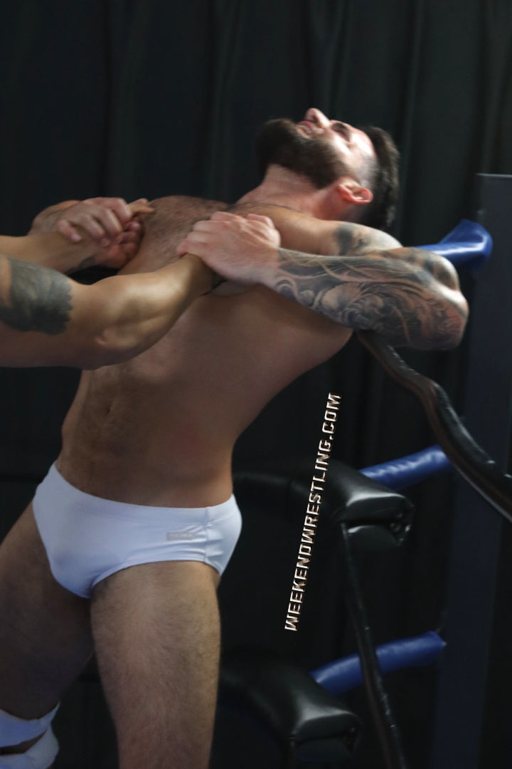 This was a great match up with… current weekend wrestling hunk Zach Reno vs newcomer Blayne… The premise of two twin like hunks going at it in the ring was well done… Both guys look fantastic in this match up ( I am loving Zach thicker hairy build)… This is a match up I highly recommend checking out… As usual Zach Reno never disappoints… He does an amazing job throughout it… Blayne did a great job as well… a nice new addition to weekend wrestling…