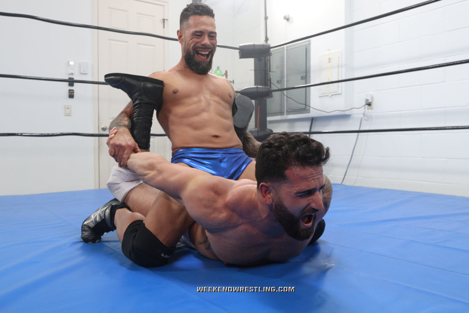 This was a great match up with… current weekend wrestling hunk Zach Reno vs newcomer Blayne… The premise of two twin like hunks going at it in the ring was well done… Both guys look fantastic in this match up ( I am loving Zach thicker hairy build)… This is a match up I highly recommend checking out… As usual Zach Reno never disappoints… He does an amazing job throughout it… Blayne did a great job as well… a nice new addition to weekend wrestling…