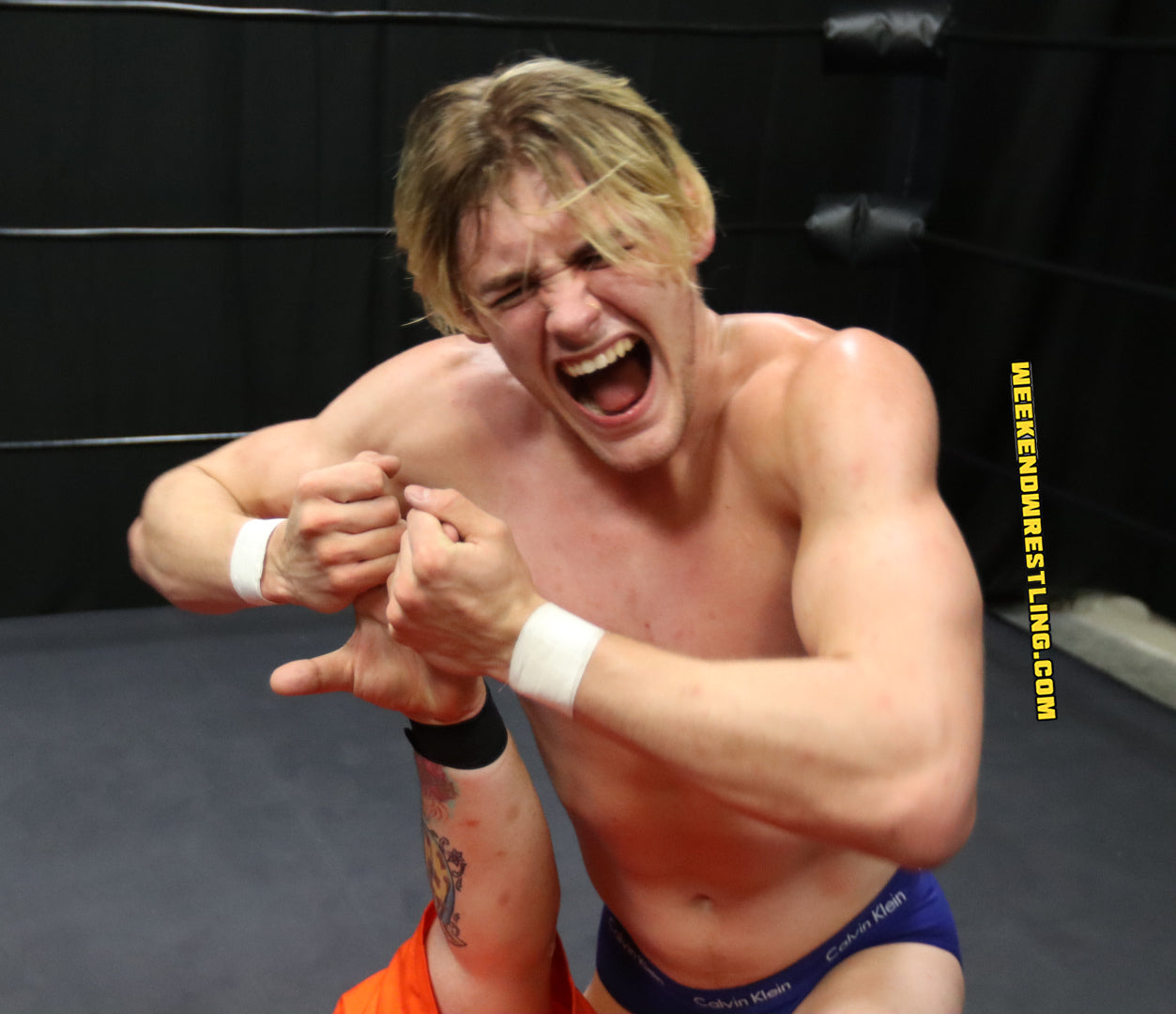 This was a great match up with… current weekend wrestling hunk Zach Reno vs newcomer Blayne… The premise of two twin like hunks going at it in the ring was well done… Both guys look fantastic in this match up ( I am loving Zach thicker hairy build)… This is a match up I highly recommend checking out… As usual Zach Reno never disappoints… He does an amazing job throughout it… Blayne did a great job as well… a nice new addition to weekend wrestling…