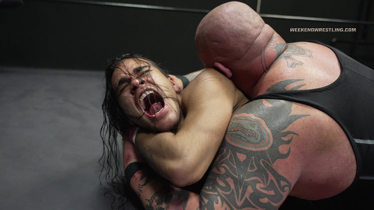 Shockwave, already a ticking time bomb of rage, snaps. What follows is nothing short of destruction. Jaden, despite his athleticism, becomes a victim of Shockwave’s fury, getting tossed, slammed, and pounded without mercy. With every impact, Jaden’s screams fill the ring, but there's no escape from Shockwave's relentless assault.