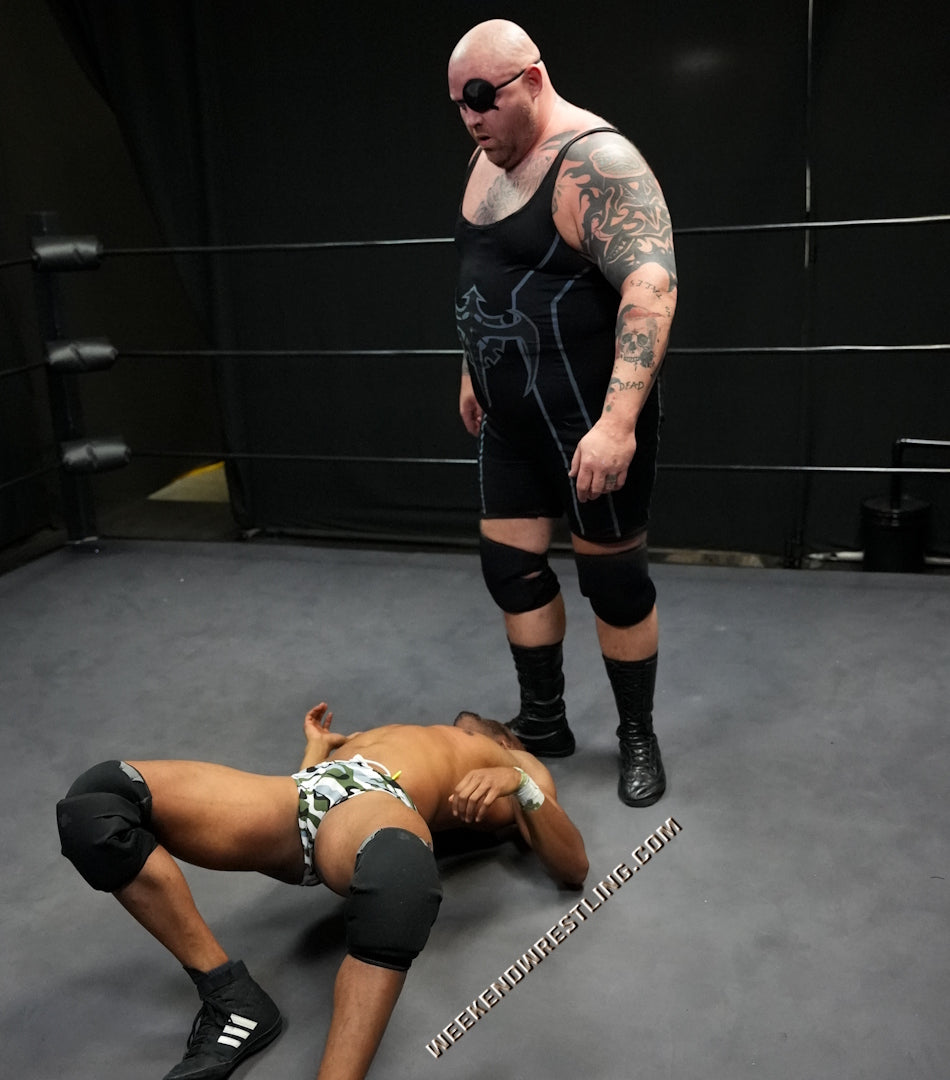 The camera fades in on Tedros walking to the ring, gloating on social and hyping up the fans about the match he’s sure he’s going to win. That confidence starts to fade the second he sees his opponent—Shockwave, all 6’6” and 335 lbs of brute force waiting in the ring. The “friendliest guy at Weekend Wrestling” suddenly looks less certain as he steps inside to face a giant who clearly didn’t come to make friends.