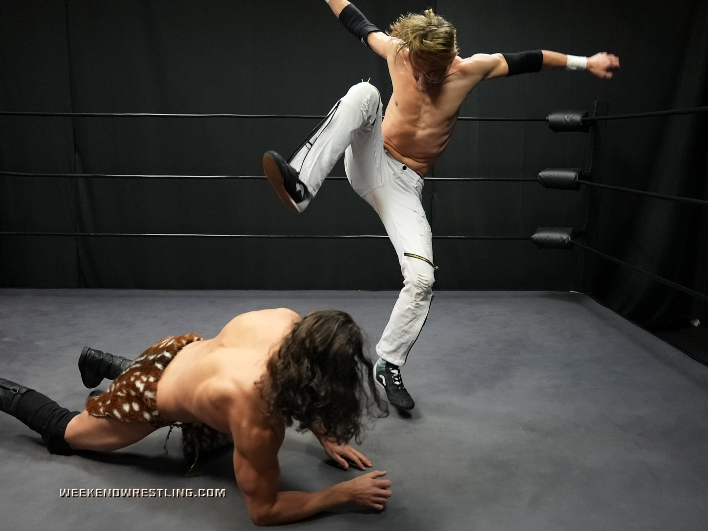 This was a great match up with… current weekend wrestling hunk Zach Reno vs newcomer Blayne… The premise of two twin like hunks going at it in the ring was well done… Both guys look fantastic in this match up ( I am loving Zach thicker hairy build)… This is a match up I highly recommend checking out… As usual Zach Reno never disappoints… He does an amazing job throughout it… Blayne did a great job as well… a nice new addition to weekend wrestling…