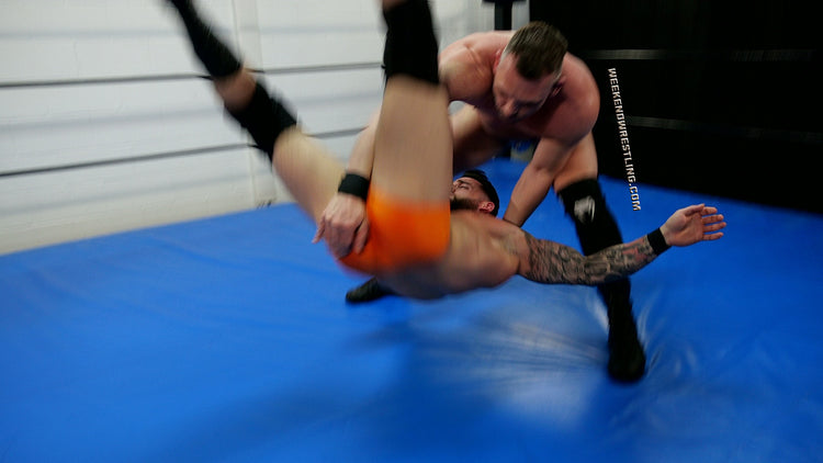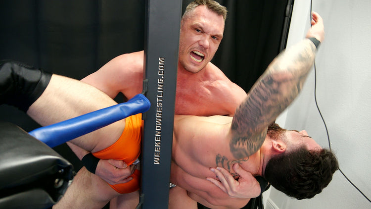 I always love a good Big vs Small match. Ricky Vegas manhandles Stefan and it's so hot. He low blows him, forces him to flex, and knocks him out. Stefan looks hot in the spandex gear and love that he sells the low blows so well clutching his battered bulge throughout the match.